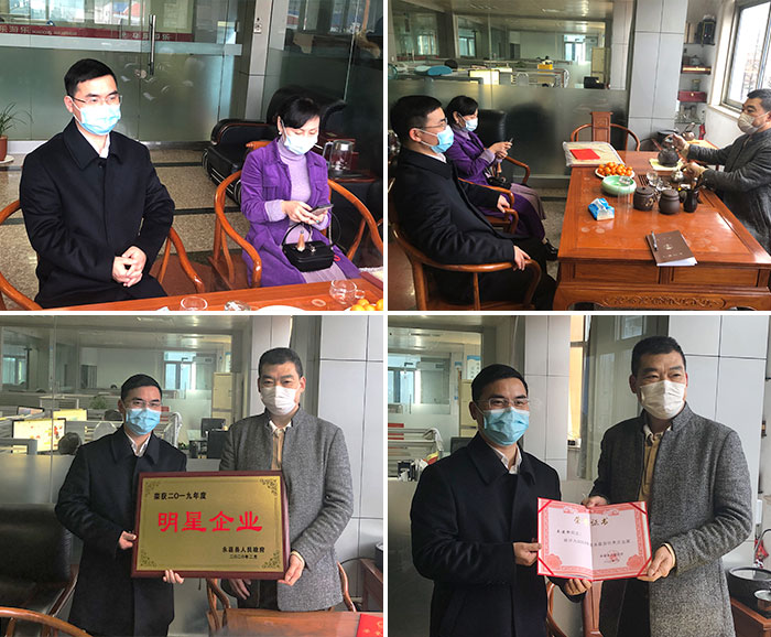 永嘉县政府领导除了现场指导防疫工作外,还充分肯定了金沙990游乐在2019年的成就与贡献,并授予“明星企业”称号。