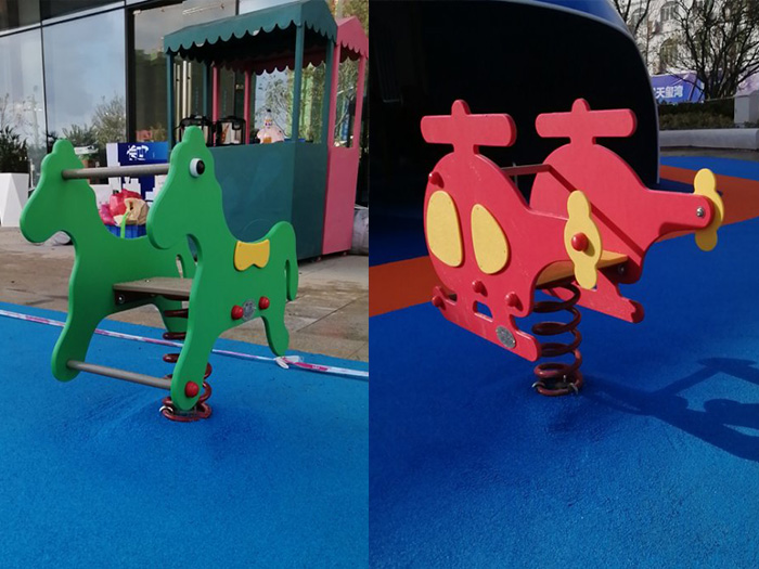 • 广西贺州碧桂园项目是一个以鲸鱼为原型而设计的游乐设备项目,整个项目充满了海洋气息,设置了跷跷板、摇摇乐、滑梯、爬网等游乐设备。