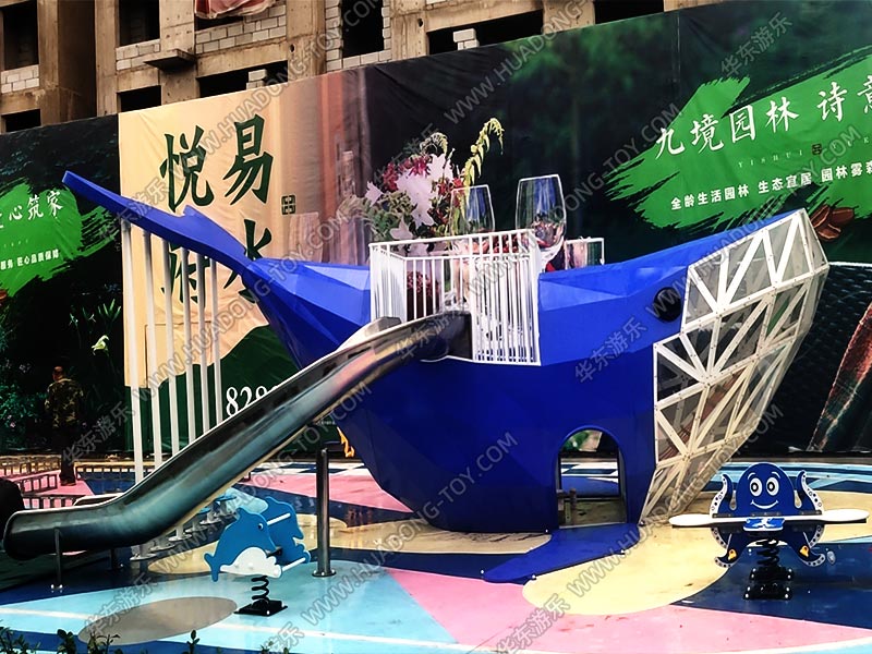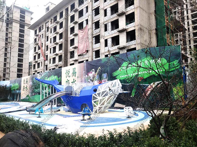 易水悦府房地产项目是一个综合性的休闲、娱乐、生活为一体的生活服务器区,在这里主要为小区业主提供一个可以互动、交流、玩耍的场所,该项目采用了金沙990游乐自主设计的大鲸鱼滑梯为主,附加摇摇马等游乐设施,整个项目设计完美,实用性强,深受业主们的喜爱。