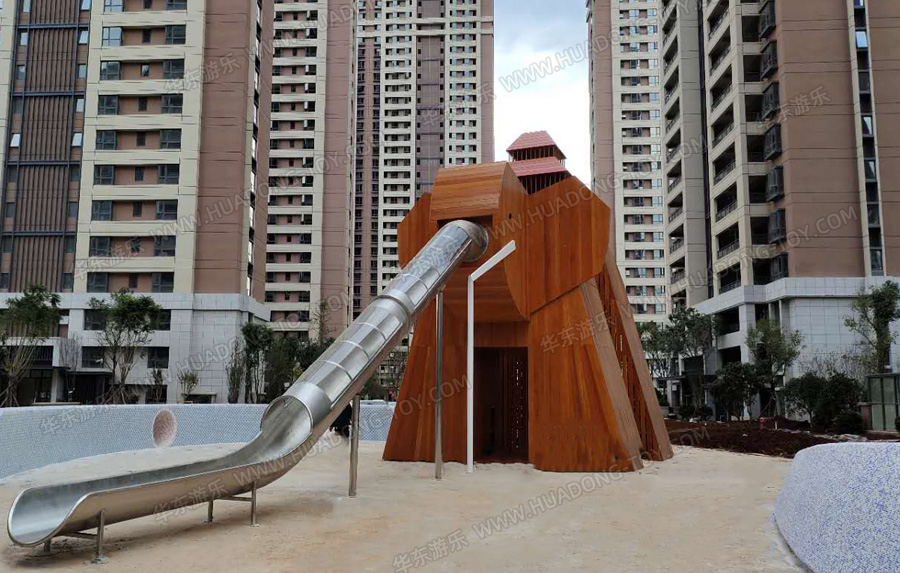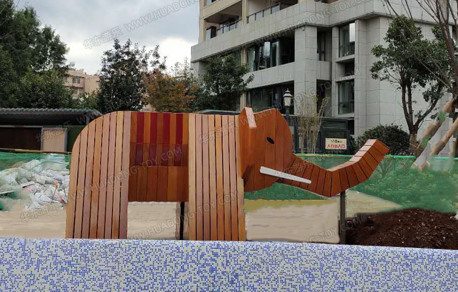 • 云南曲靖麒麟嘉园是一个中高端的生活服务区,该项目采用非洲大象为主题儿设计,利用庞大的身躯、威猛的形象给小朋友带来很强的安全感,设计了爬网、不锈钢滑梯、沙池等游乐设施,能够让小朋友十分喜爱的玩耍。