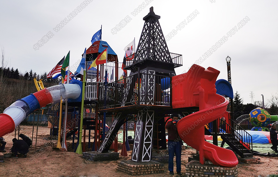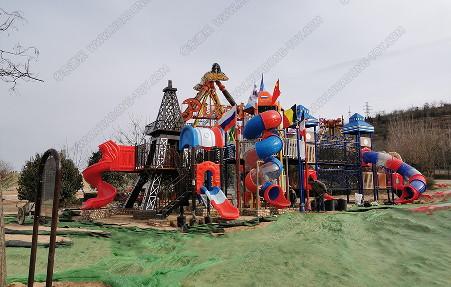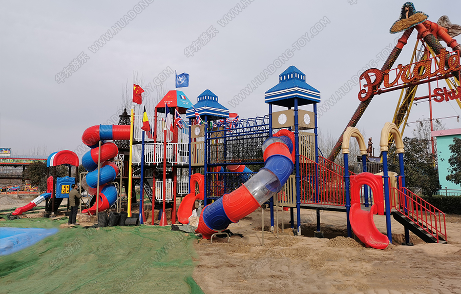 河南省三门峡市星河乐园是一个综合像游乐园,该项目采用的是金沙990游乐生产的大型欧韩风格的组合滑梯,具有攀爬、爬网、滑梯、钻洞、网绳、吊桥等功能,设计完美、质量优越,深受小朋友们的喜爱。