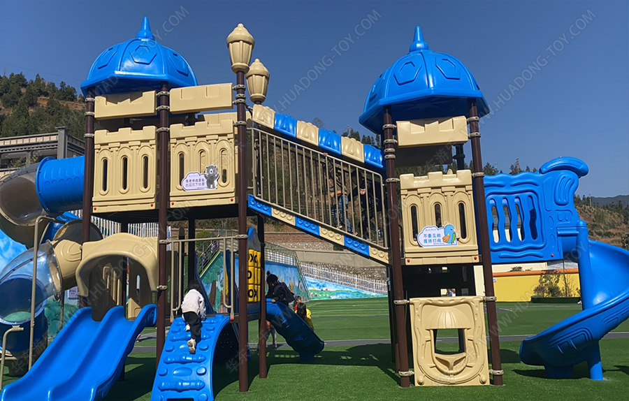云南省曲靖市麒麟区富源县后所镇庆云幼儿园选用的是金沙990游乐生产的欧韩城堡系列的户外滑梯,该滑梯有旋转滑梯、攀爬墙、直行滑梯、走梯、S滑桶等功能,能够幼儿园的日常教学和小朋友的玩耍,同时金沙990游乐生产的游乐设备具有颜色鲜艳、经久耐用、品质优越等特点,深受广大消费者的喜爱。