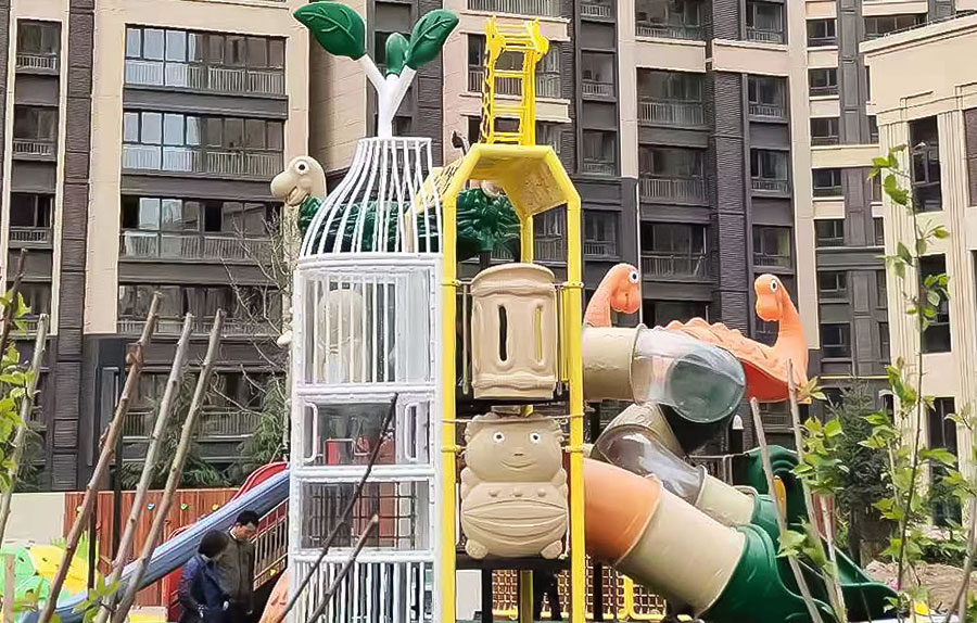 房地产综合项目规划是房地产游乐项目主要的设计类型,此次项目采用的是金沙990游乐生产的动物系列滑梯作为主要游乐设备,并且配备了跷跷板、摇摇乐、秋千、毛毛虫钻洞、攀爬墙、万能拓展等游乐设备,不仅丰富了生活在该小区人们的生活、也为小朋友的发展提供了一个很好的游乐场所。