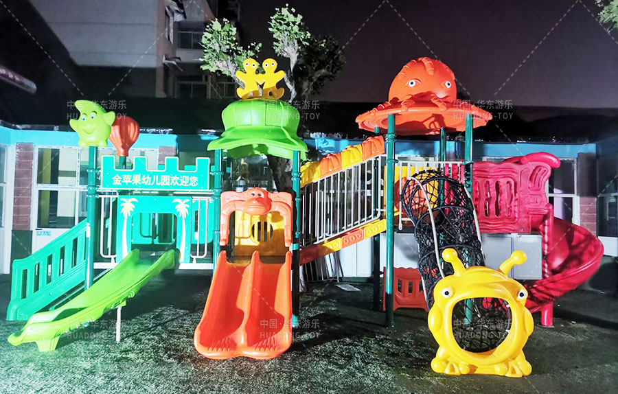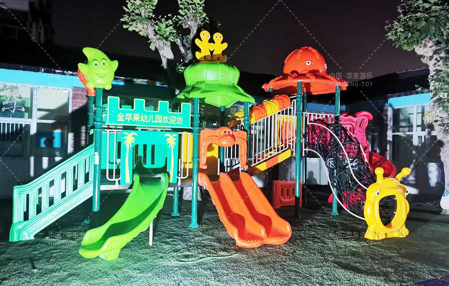 山东省济南市历城区金苹果幼儿园是一家由教育局批准的幼儿园,主要提供学前教育的服务和托管,此次学校选用的是由金沙990游乐自主生产和研发的动物系列组合滑梯,该滑梯设置了网洞攀爬、S形滑梯、直行滑梯、爬梯等功能,独特的动物系列设计风格深受广大小朋友们的喜爱。