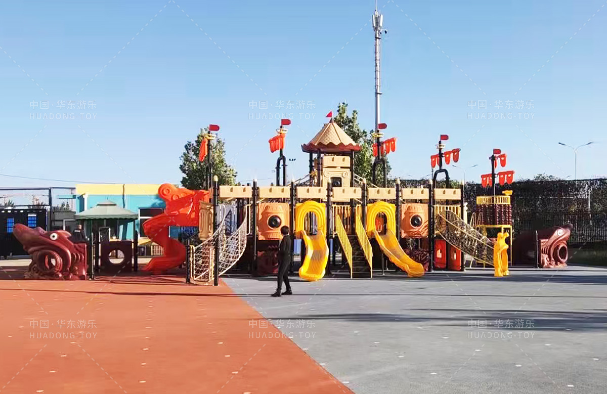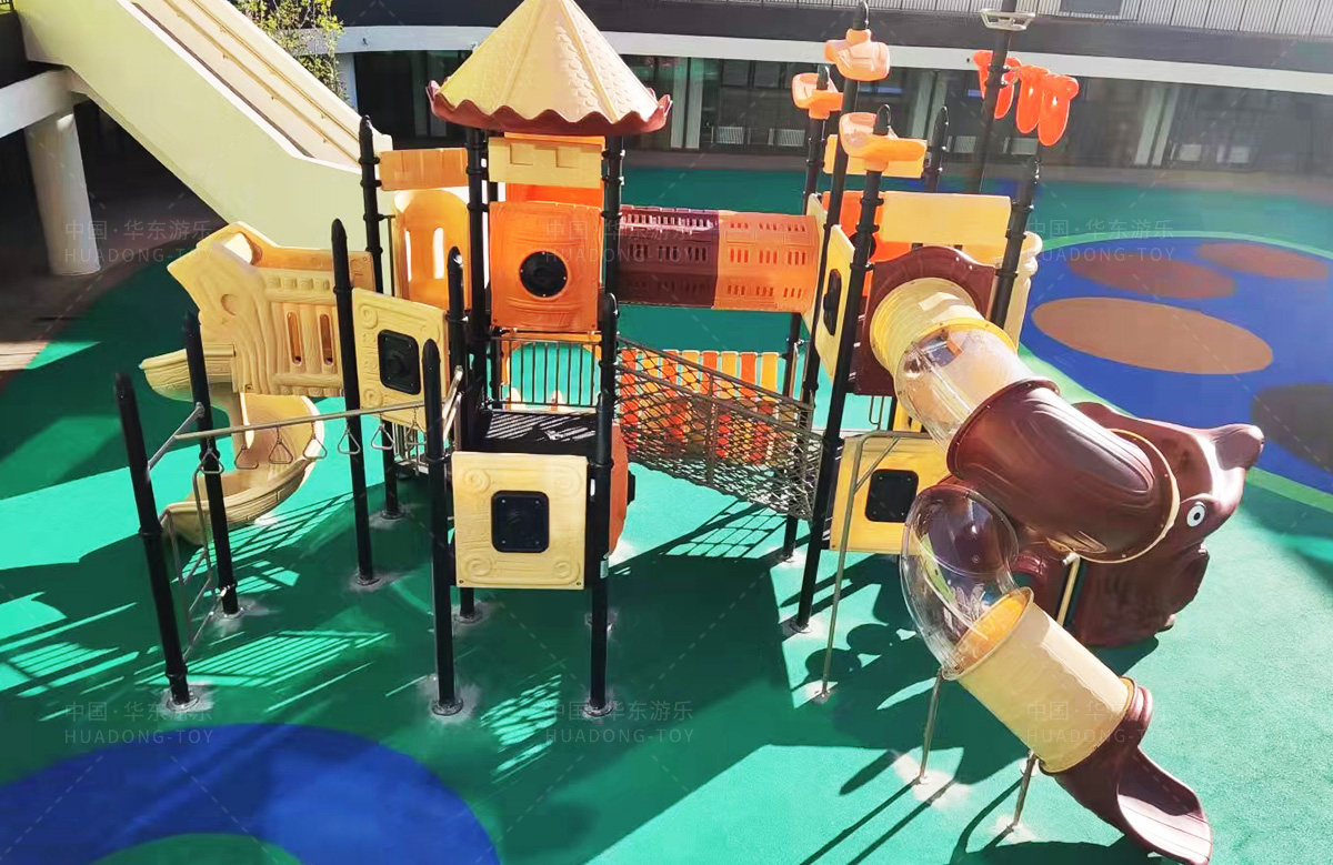 北京市朝阳区朝花幼儿园选用的是金沙990游乐自主研发的海盗船系列组合滑梯,该套设备设置了大型S型滑梯、攀爬网、钻洞、网桥、攀岩等功能,为老师的教学提供了方便,同时也为校园提供了生机与活力。