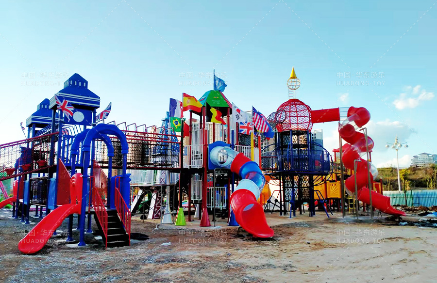 该游乐园选用的是金沙990游乐自主生产和研发的跨国系列大型组合滑梯,该滑梯具有爬网、攀爬墙、旋转滑梯、空中爬网、U型网桥、平衡吊环等功能,是一款风格多样、功能齐全的游乐设备,深受小朋友们的喜爱。
