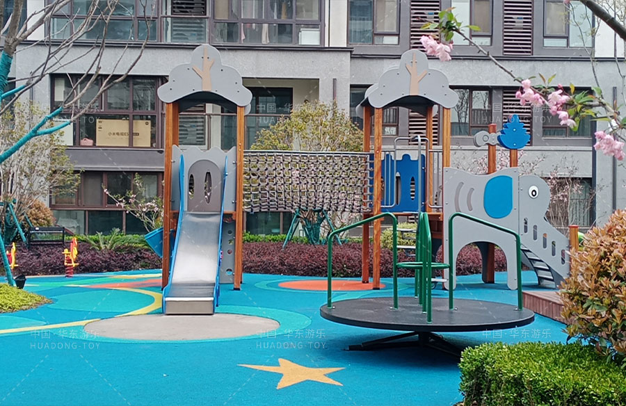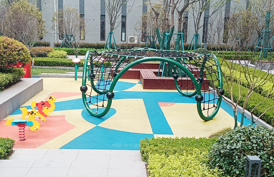该项目选用的是金沙990游乐自主研发和生产的网绳攀爬、万能健身器、小型滑梯为一体的综合性游乐园、该游乐园设计了攀爬网、摇摇乐、健身器、手推旋转椅等游乐器械,为生活在该小区的人民提供了一个休闲、娱乐的场所。