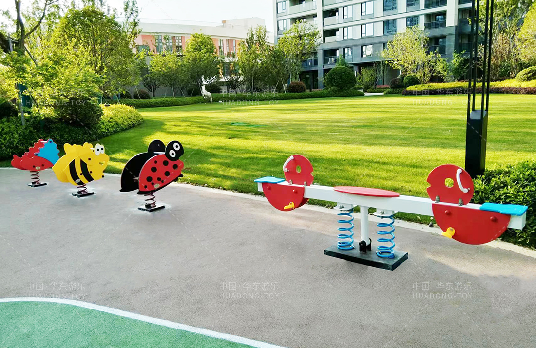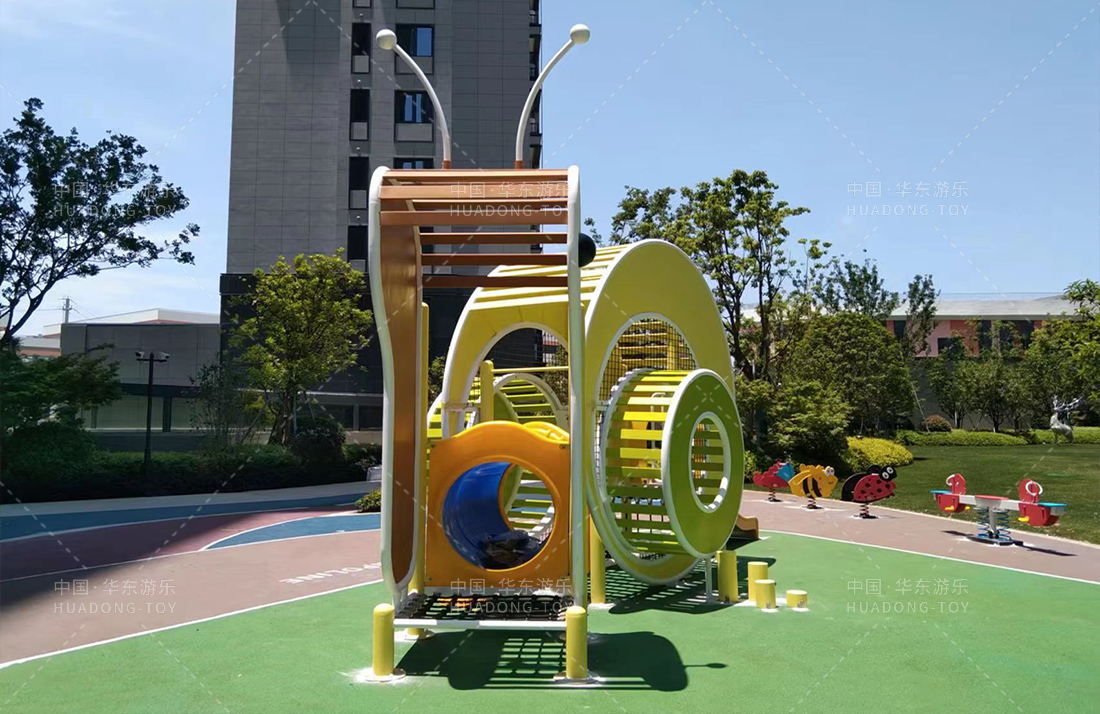 温州德信博悦湾选用的是金沙990游乐设计和生产的以动物世界的蜗牛为外形而设计的游乐设备,整个游乐场添置了小朋友喜欢的摇摇乐、传声筒、跷跷板、攀爬杆等游乐设备,为生活在该小区的小朋友提供了一个娱乐、休闲、玩耍的场所。