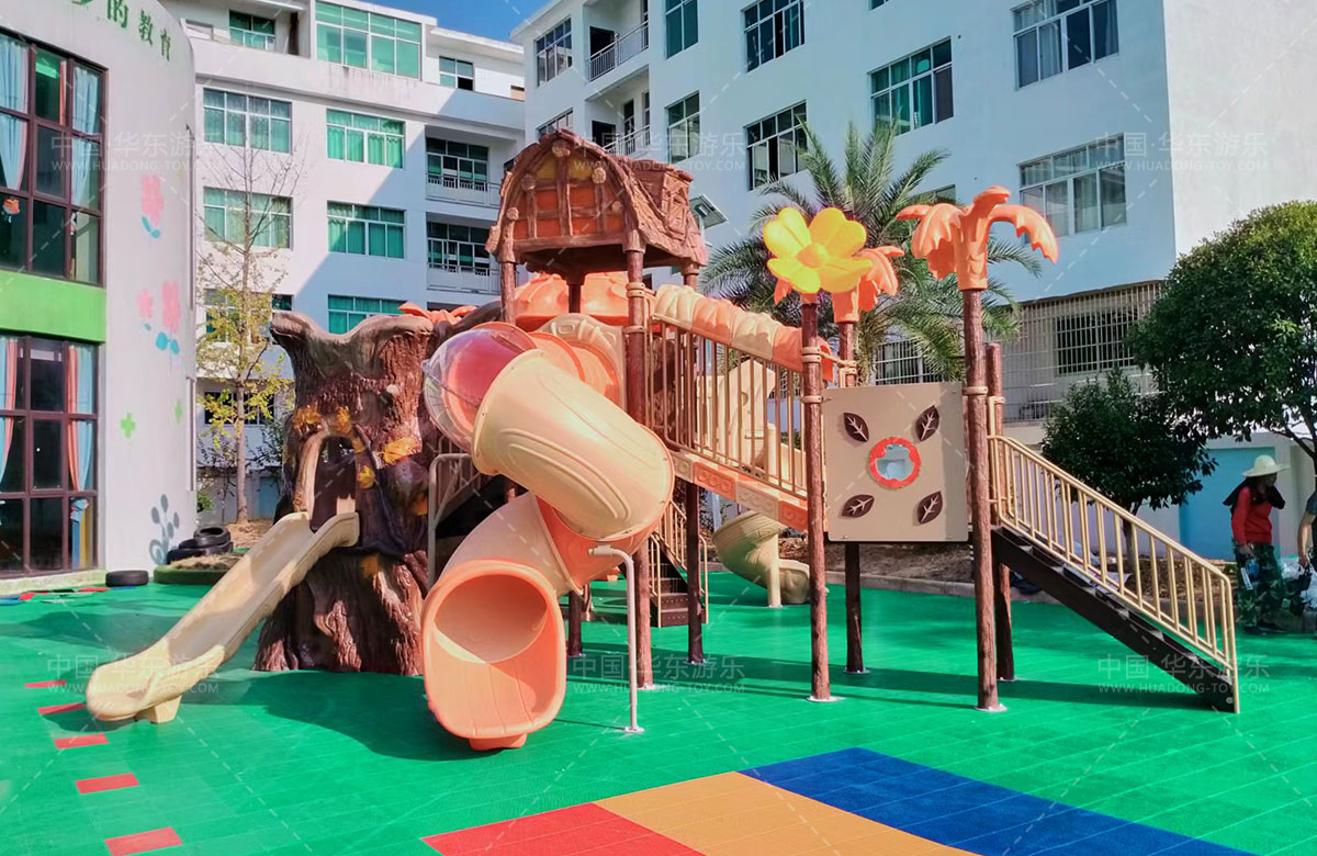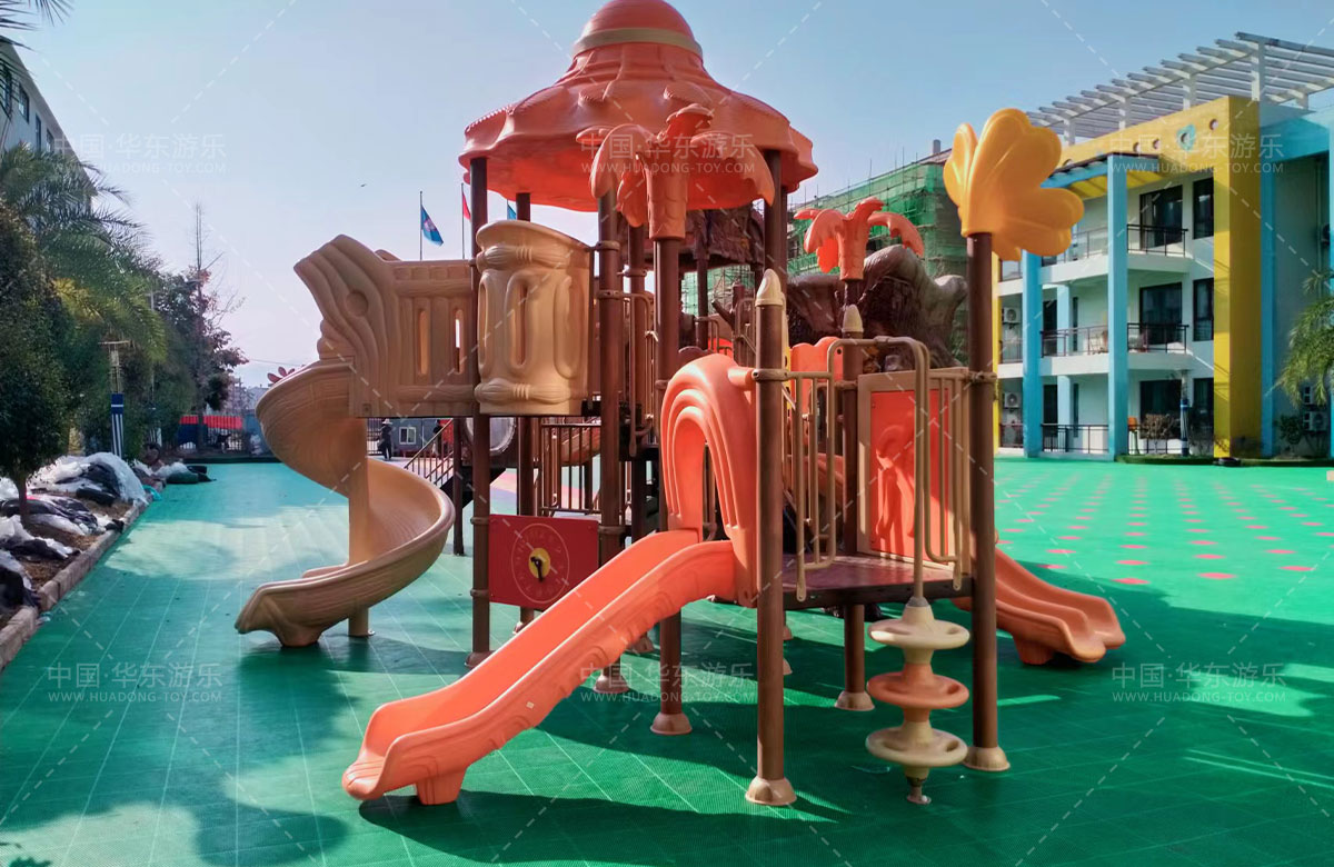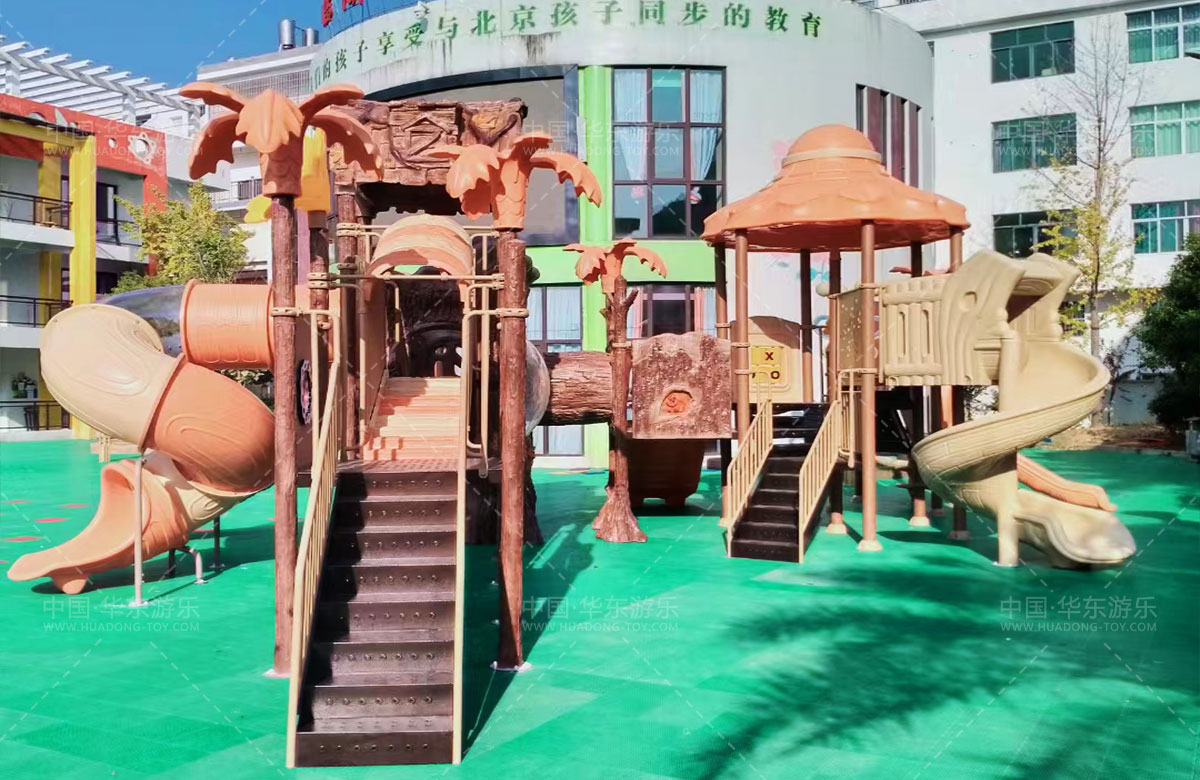 江西省上饶市临湖中心幼儿园是一个专业的学前幼儿教育学校,此次选用的是金沙990游乐自主研发和设计的具有滑梯、钻洞、攀爬等功能为一体的远古部落系列的组合滑梯,该滑梯具有功能齐全、颜色艳丽、主题性强、使用寿命长等特点,深受小朋友们的喜爱。