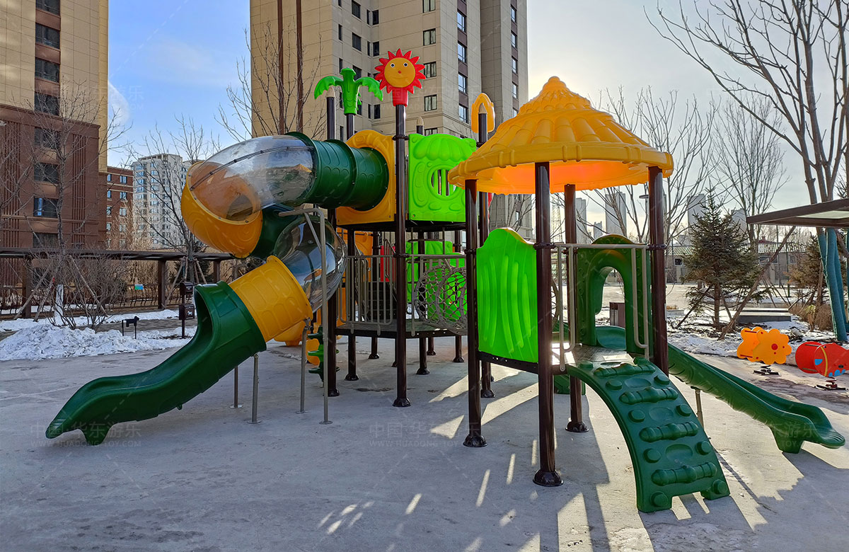 该项目选用的是金沙990游乐自主研发和设计的大自然系列滑梯喝魔法屋系列滑梯,为了让生活再该区域的人群有一个更好的休闲娱乐的场所,还设置了打击乐器、儿童摇摇乐、儿童秋千等游乐设备,让小朋友能够健康快乐的成长。