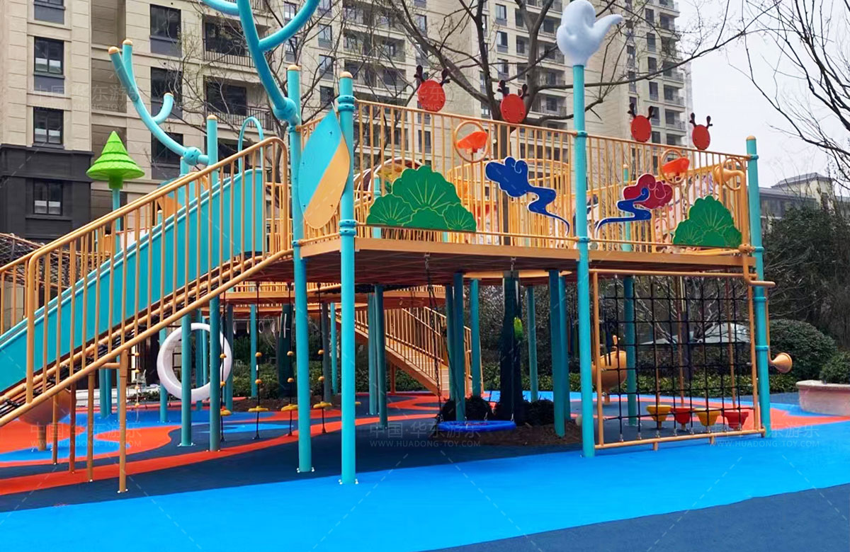 建投东方名府源著儿童游乐项目是金沙990游乐生产的非标定制的主题性游乐设备,整个项目采用以森林麋鹿为设计主题,分别设计了攀爬网、钻洞、不锈钢滑梯、旋转椅、传声筒、秋千、脚踏平衡杆、攀爬梯等功能,为小朋友的健康成长提供了一个很好的游玩场所。