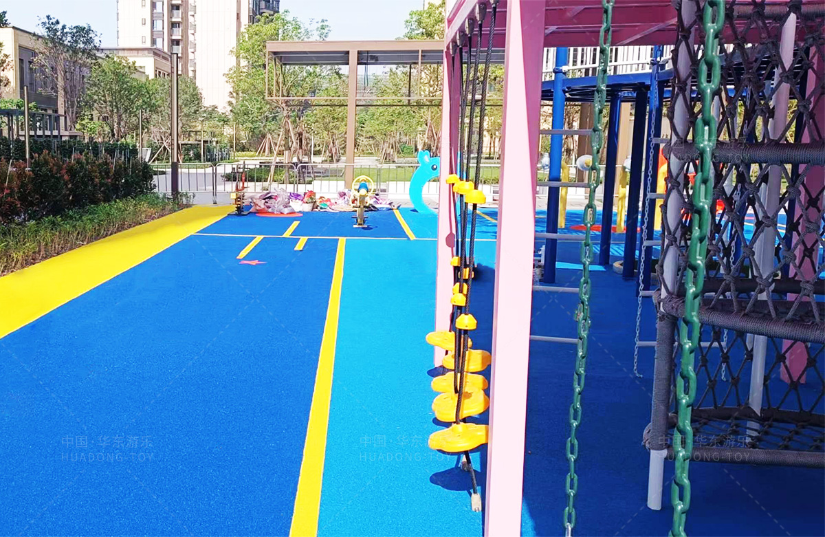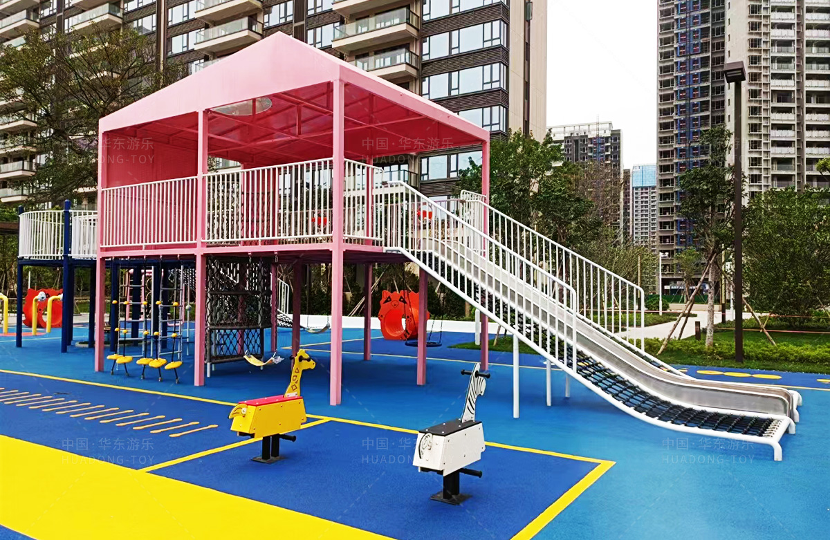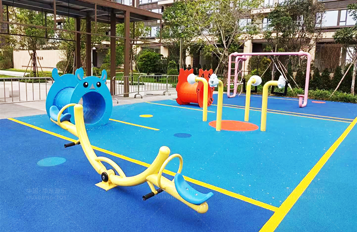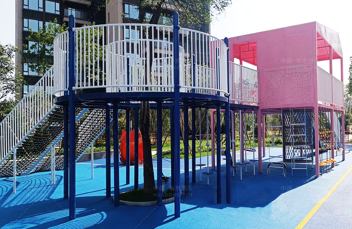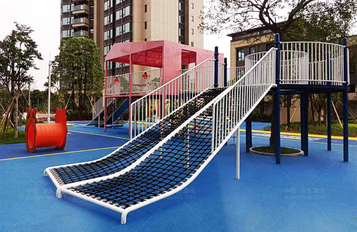 该房地产选用的是金沙990游乐设计和生产的非标定制系列的游乐设备,分别设置了跷跷板、摇摇乐、钻洞、传声筒、蜗牛主题组合滑梯,以及具有钻洞、攀爬网、攀爬绳、攀爬梯等功能为一体的空中小屋的游乐设备,该游乐园的建设不仅仅丰富了小区人们的休闲生活,还为小朋友提供了一个休闲、娱乐的场所。