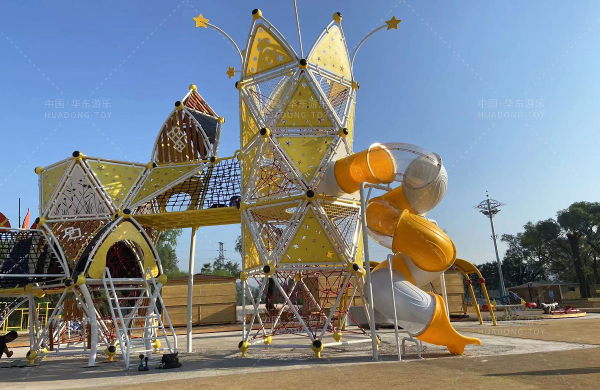 崔家沟体育广场体育广场选用的是金沙990游乐自主研发和设计的非标定制系列游乐设备,分别设置了攀爬网、钻洞、不锈钢滑梯、儿童摇摇乐、儿童秋千、木质拓展等游乐设备,很大程度上丰富了孩子们的娱乐生活,也为整个场地提供了生机与活力。