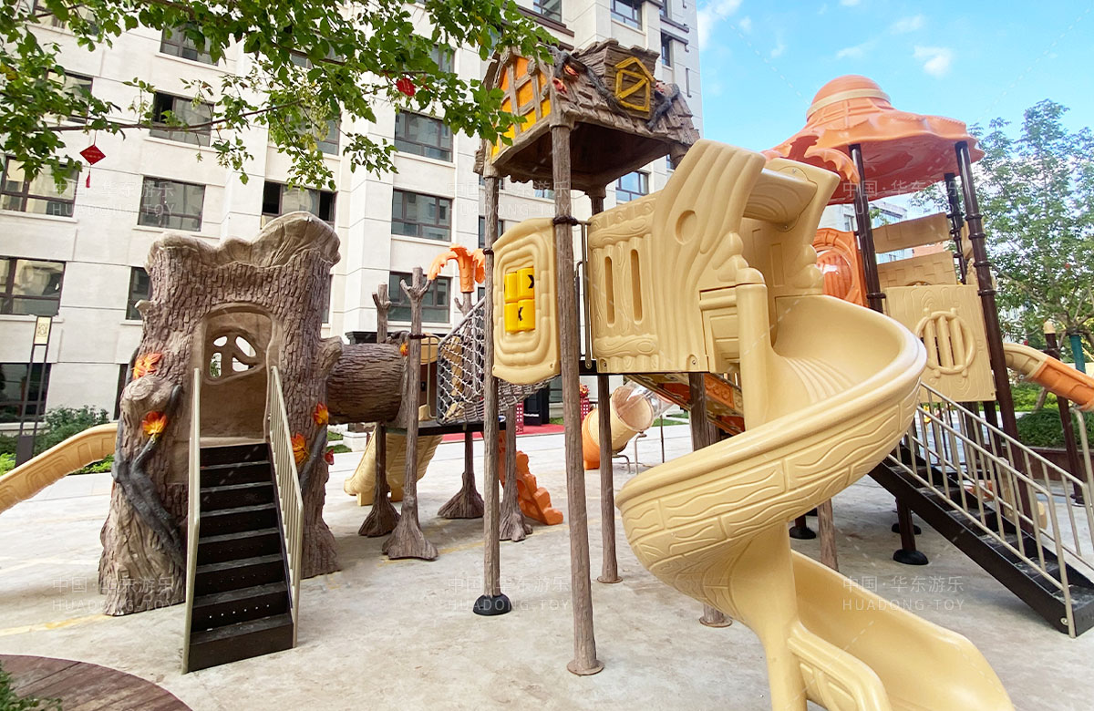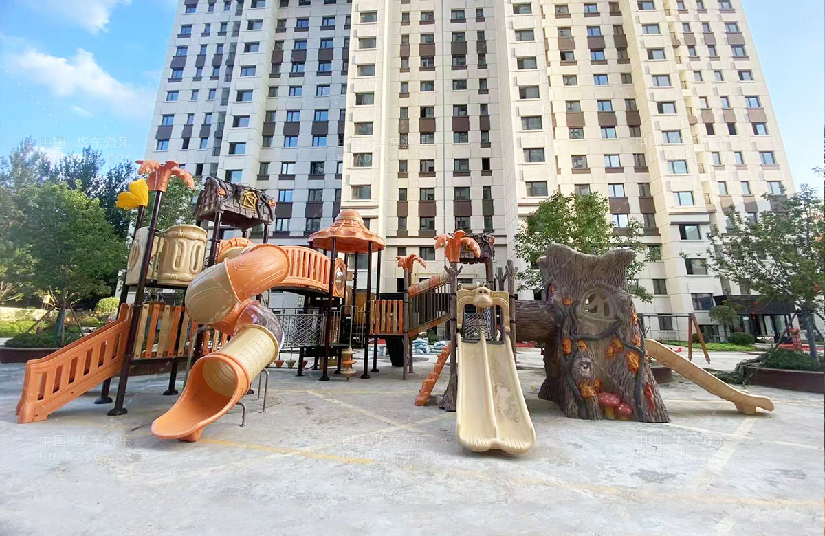 哈尔滨市南岗区学府选用的是金沙990游乐自主研发和设计的远古部落系列的组合滑梯,该滑梯具有功能齐全、玩耍多样、使用寿命长等特点,除此之外还增加了儿童跷跷板、儿童秋千等儿童游乐设备,不仅仅丰富了孩子们的玩耍场所,也小区的生活增添了更多的生机与活力。