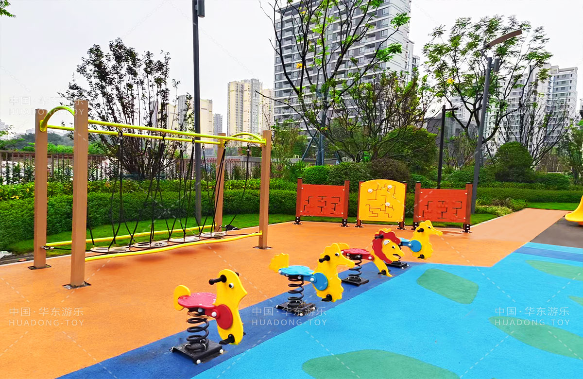 四川省成都市新城林屿溪选用的是金沙990游乐自主研发和设计的非标定制系列的游乐设备,为了更多让小朋友们有一个玩耍的场地,整个游乐场分别设计了儿童摇摇乐、儿童秋千、成人健身器、趣味迷宫、平衡吊桥、旋转椅、象鼻组合滑梯等游乐设备。