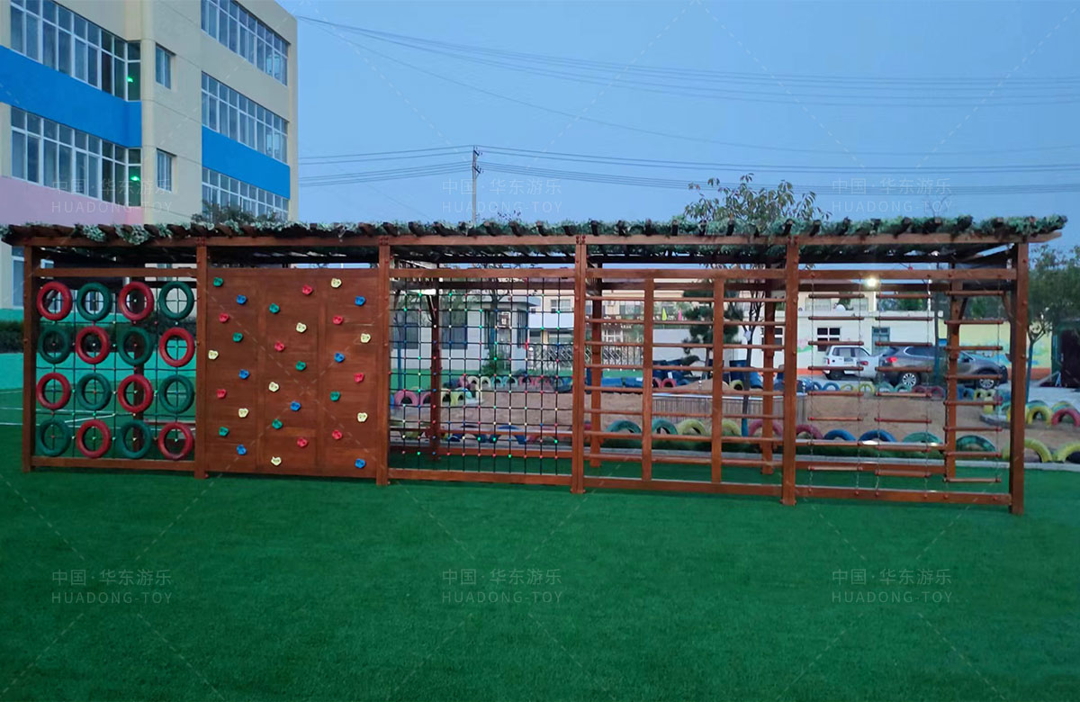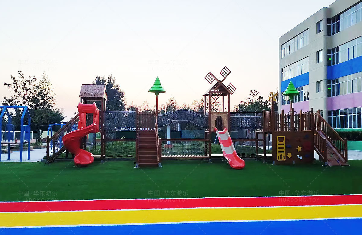 团林镇中心幼儿园是一所专业性的学期教育学校,此处选用的是金沙990游乐自主研发和设计的魔法屋系列组合滑梯和木制拓展游乐设备,具备了攀爬、钻洞、滑梯、攀爬网、攀爬梯等功能为一体,不仅仅为小朋友提供了一个很好的游乐环境,也为老师的教学提供了帮助。