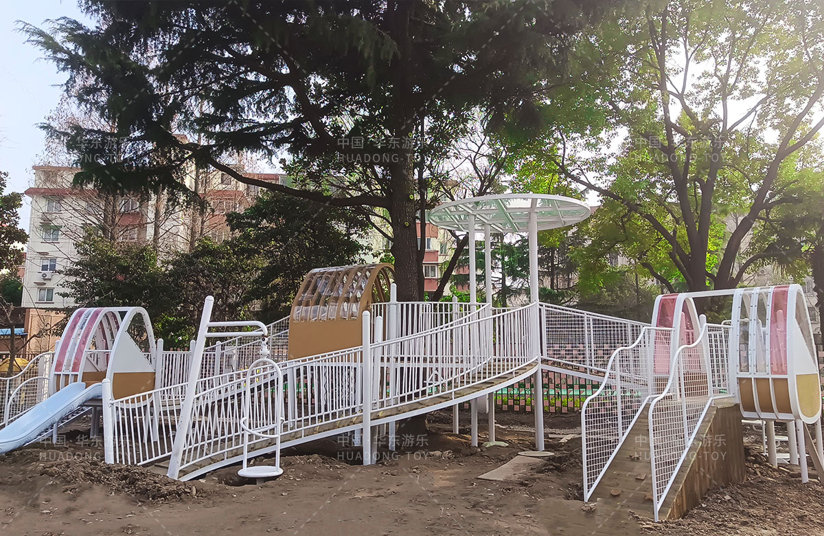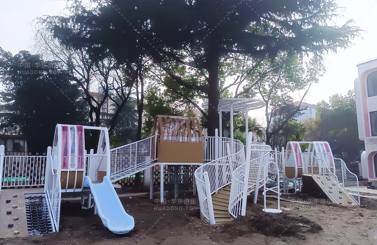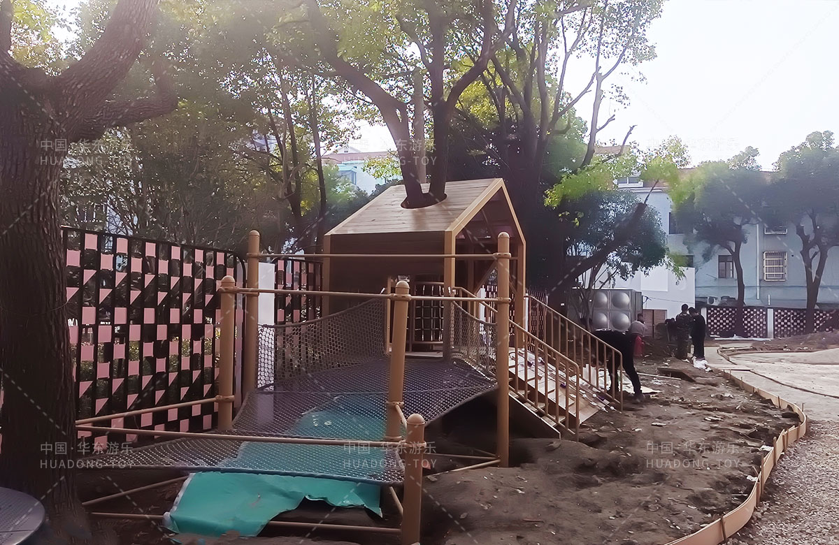 虹口区实验幼儿园简介创建于1993年9月。1994年定为一级一类幼儿园。儿园具有现代化的设施和美丽童趣的园舍。总占地面积4800多平方米。建设面积3000多㎡。绿化面积1800多㎡。 此次幼儿园游乐项目选择的是金沙990游乐自主研发和设计的一款综合性木质系列非标定制产品,不仅功能齐全,主体性也非常的适合幼儿园的场景设置。