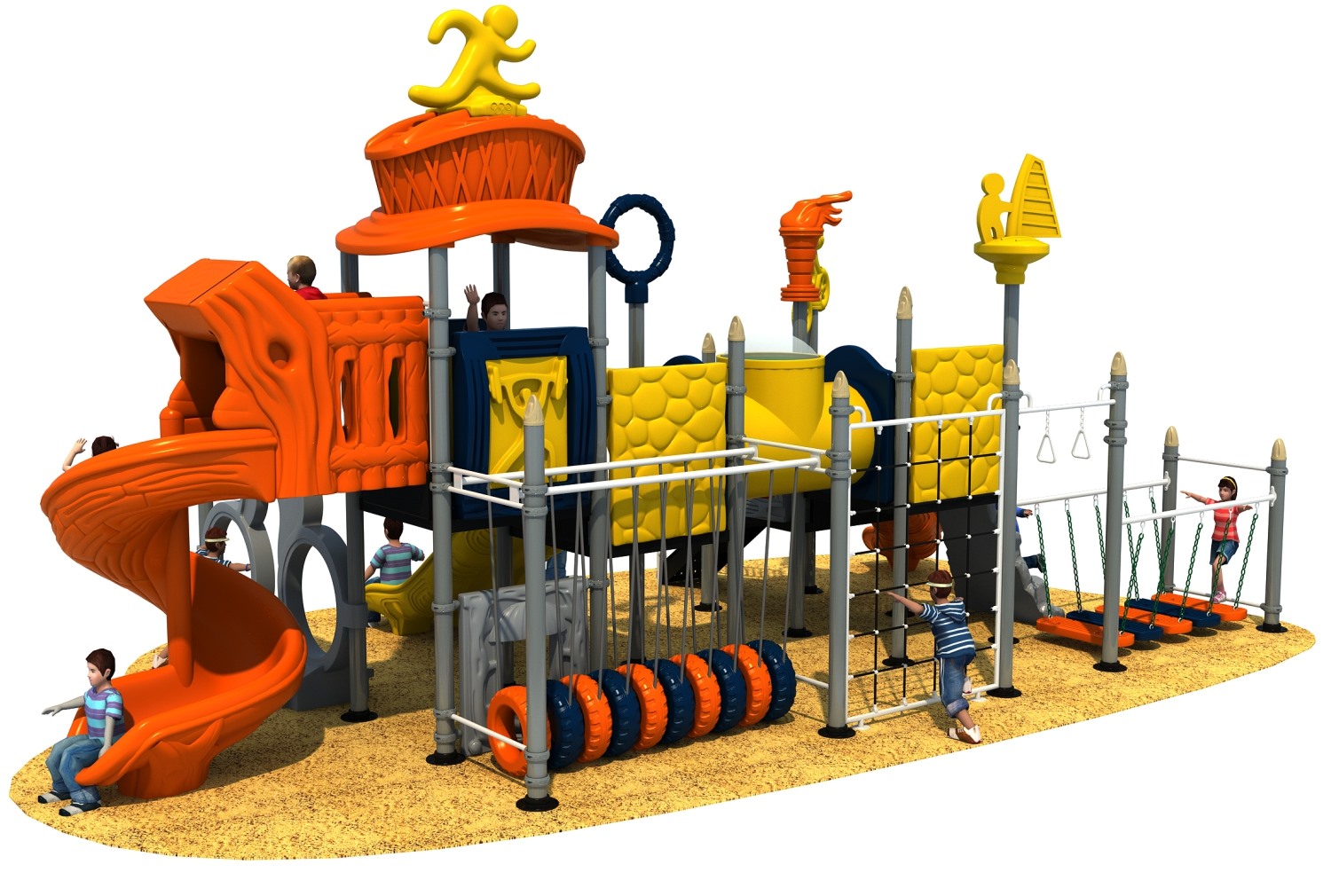 • 赛事系列游乐设备是金沙990游乐根据常见的足球、垒篮球体育等赛事而自主研发和设计的组合滑梯,它是一款能够引导孩子们在玩耍时小朋友之间应该互相帮助、相互鼓励的无动力游乐器械,也是一个具备教导孩子们学会通过自己的努力取得最终胜利而敢于拼搏和挑战的游乐设备,卡通的造型、生动的形象让小朋友在玩耍的过程中有一个愉快的童年。