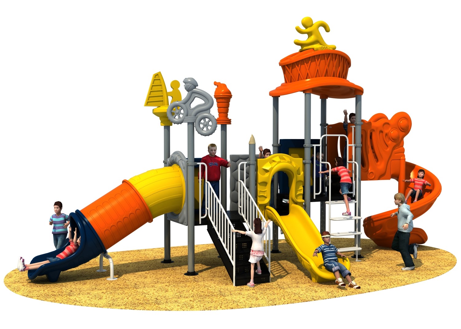 • 赛事系列游乐设备是金沙990游乐根据常见的足球、垒篮球体育等赛事而自主研发和设计的组合滑梯,它是一款能够引导孩子们在玩耍时小朋友之间应该互相帮助、相互鼓励的无动力游乐器械,也是一个具备教导孩子们学会通过自己的努力取得最终胜利而敢于拼搏和挑战的游乐设备,卡通的造型、生动的形象让小朋友在玩耍的过程中有一个愉快的童年。