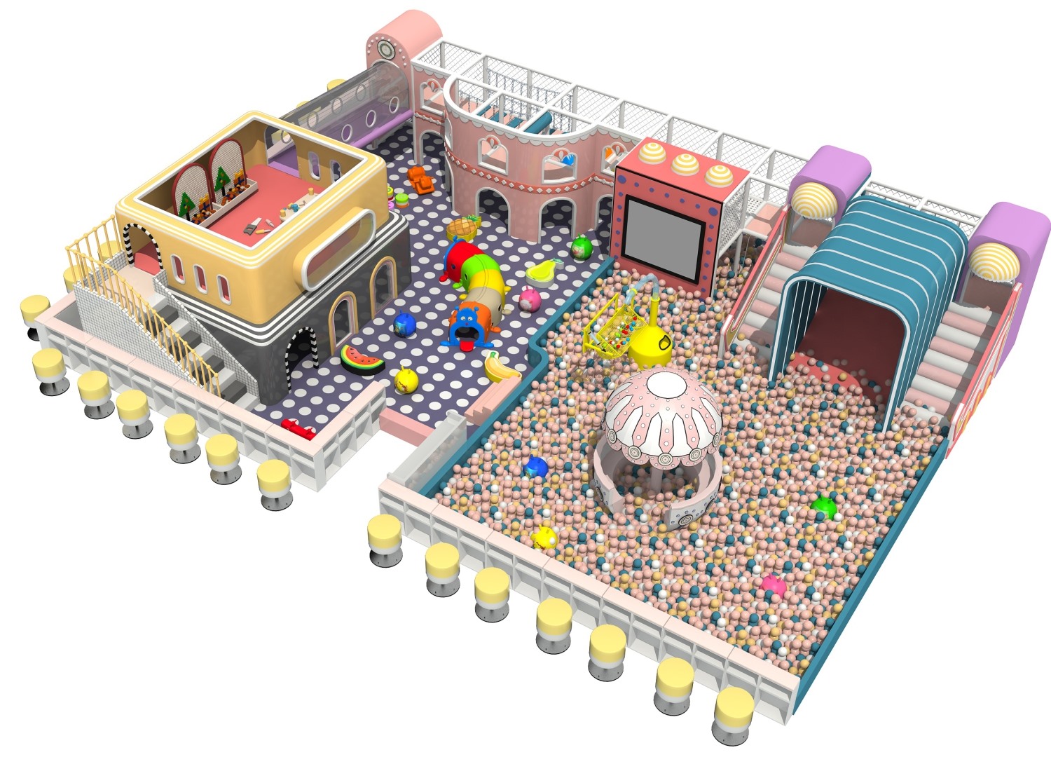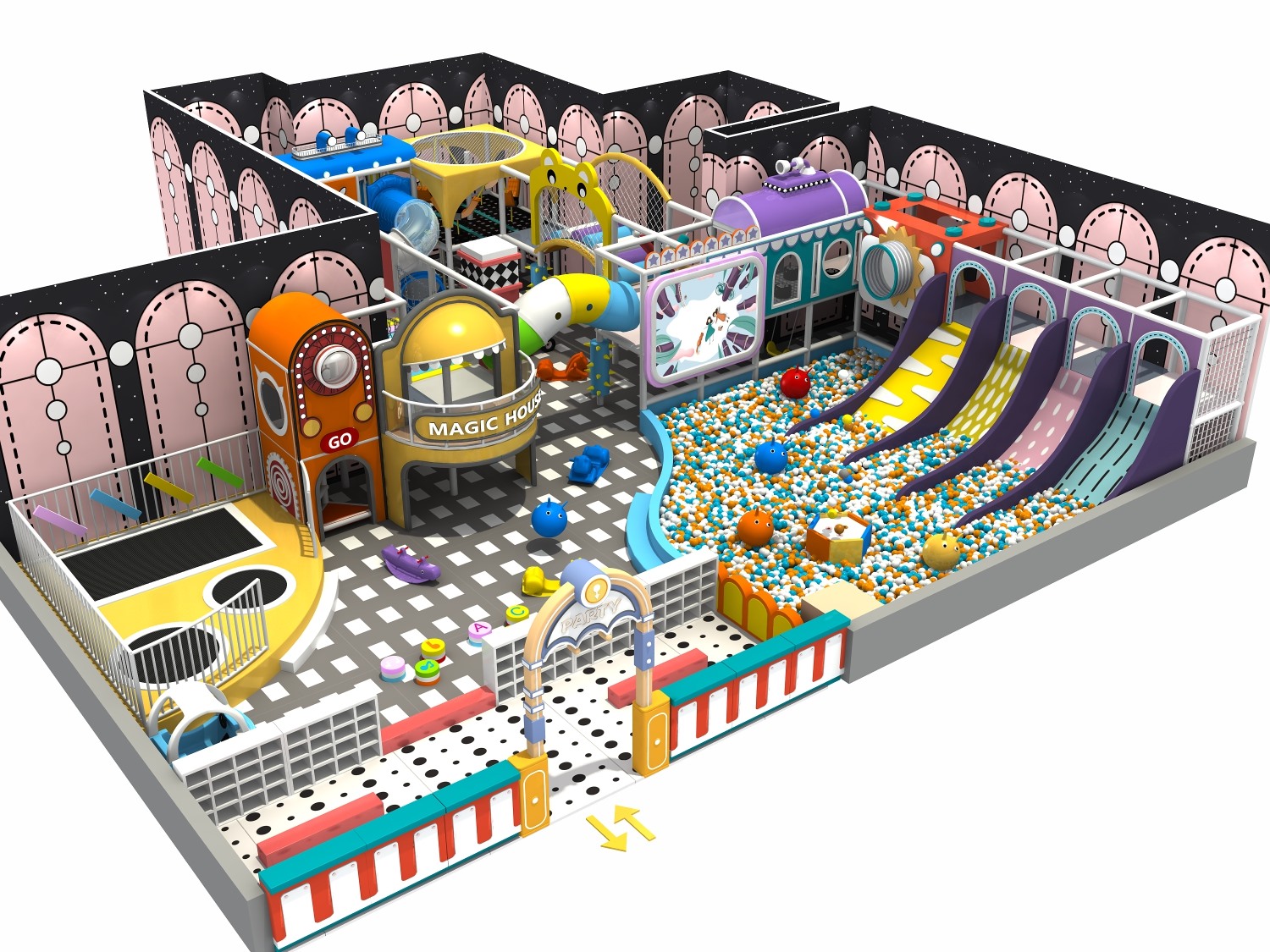 室内淘气堡又称室内儿童乐园,是针对儿童生理能力与心理特点喜欢钻、爬、滑、滚、晃、荡、跳、摇等玩耍动作而设计的综合性室内休闲娱乐场所。金沙990游乐淘气堡项目具有多样性、互动性和安全性的特点,儿童在玩乐的同时能培养独立的个性,团队协作能力,沟通能力、克服困难、积极进取的精神,锻炼身体、健脑益智。