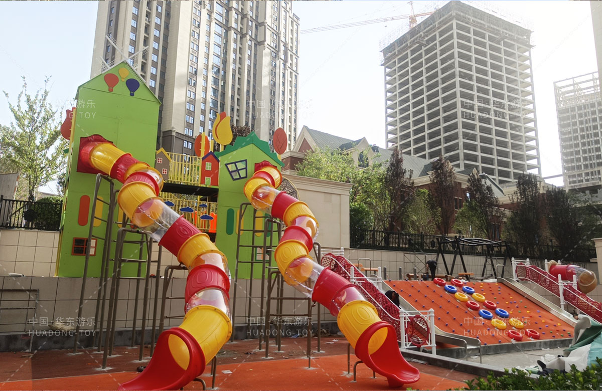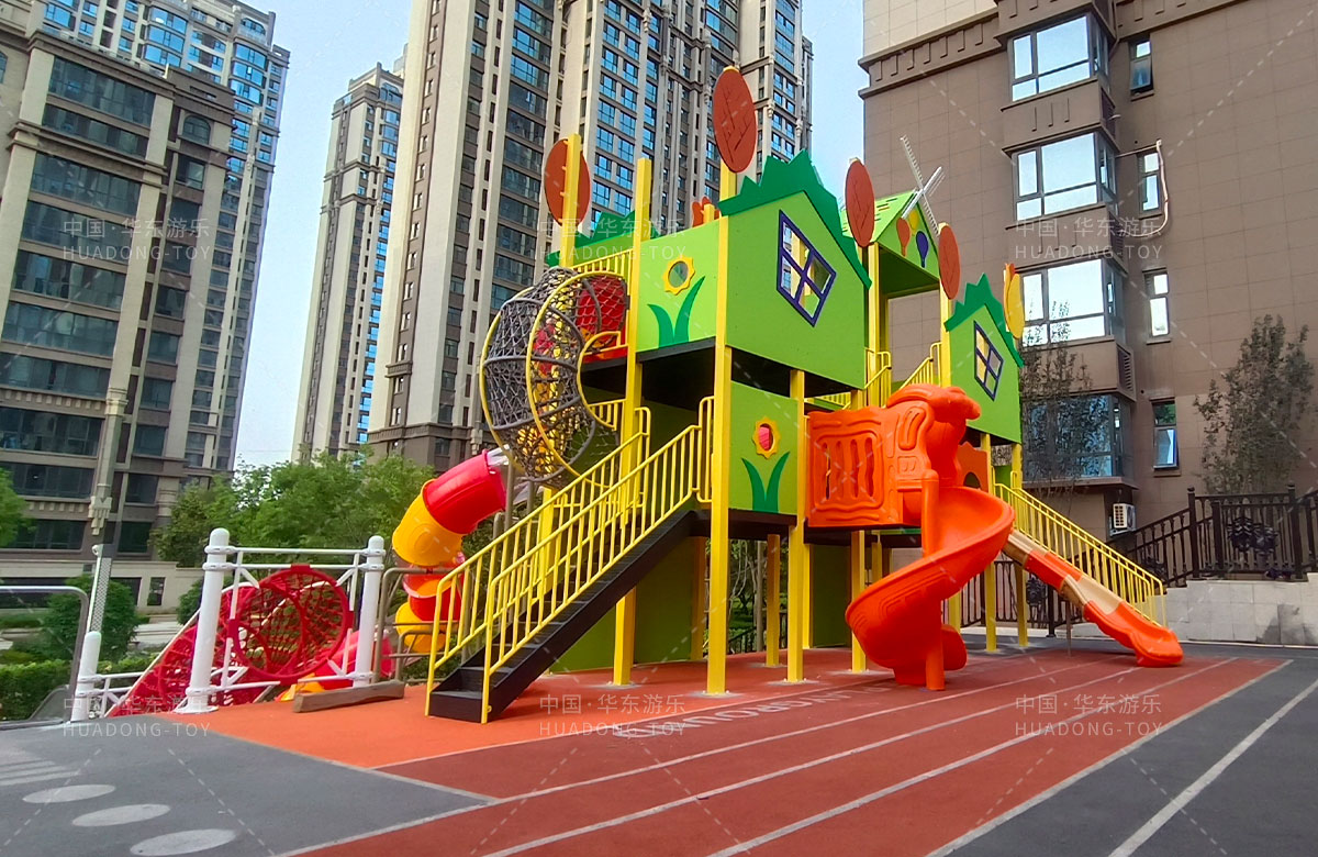 德福房地产骏景御园选用的是金沙990游乐自主研发和生产的趣味小屋为主题的游乐设备,整个场地分别设置了小朋友喜欢的组合滑梯、旋转座椅、不锈钢滑梯、组合秋千、各种类型的拓展游乐设备,不仅仅丰富了小区的生活,也为孩子们的健康成长提供了保障。