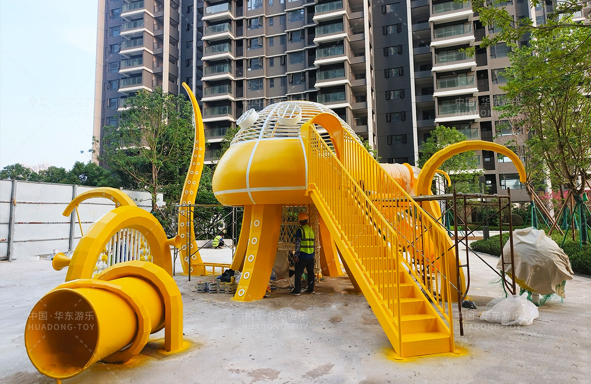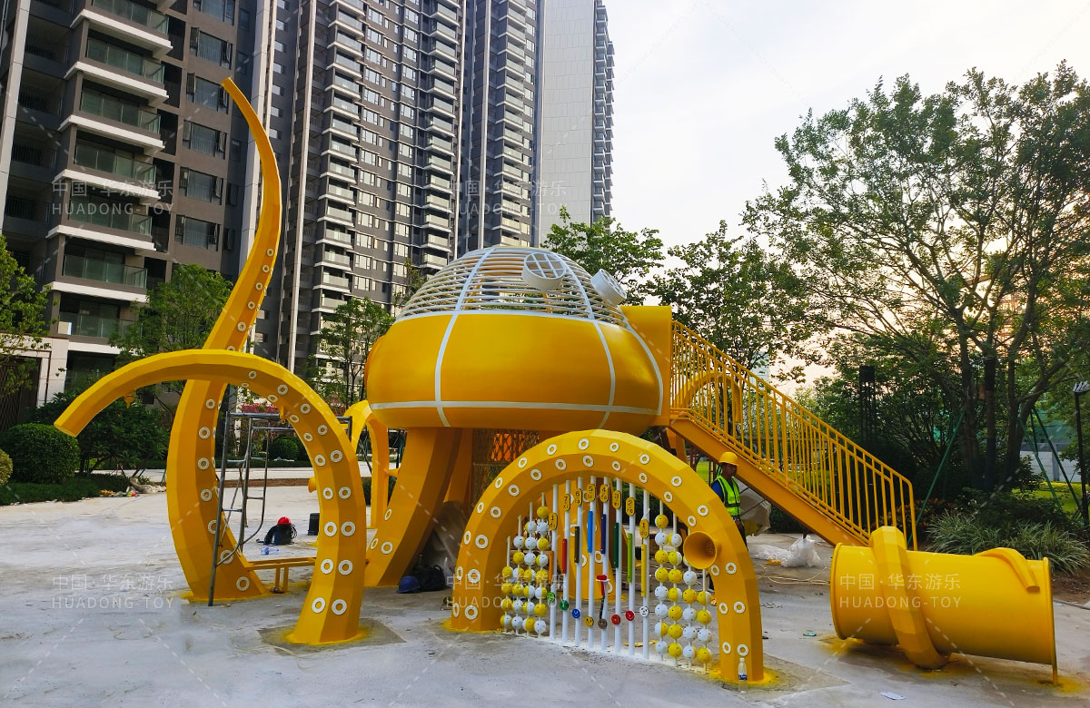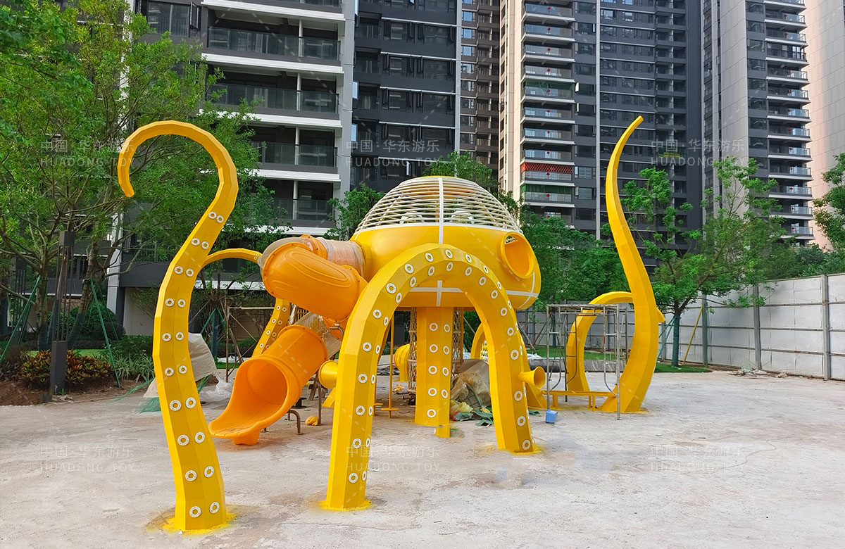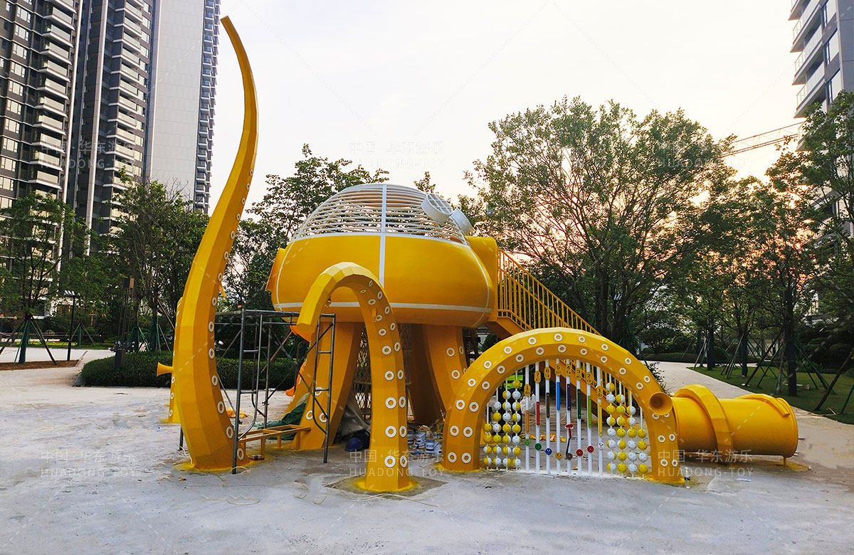 中海地产汕头阅江府选用的是金沙990游乐自主研发和设计的以章鱼为主题而设计的非标定制的章鱼主题综合游乐园,整个游乐园用一个大型的章鱼设备为主题,设计了集钻洞、攀爬网、滑梯、打击乐器等功能为一体的综合性游乐设备,为生活在当地的人群提供了一个休息娱乐的场所,也为小朋友们的健康成长提供了保障。